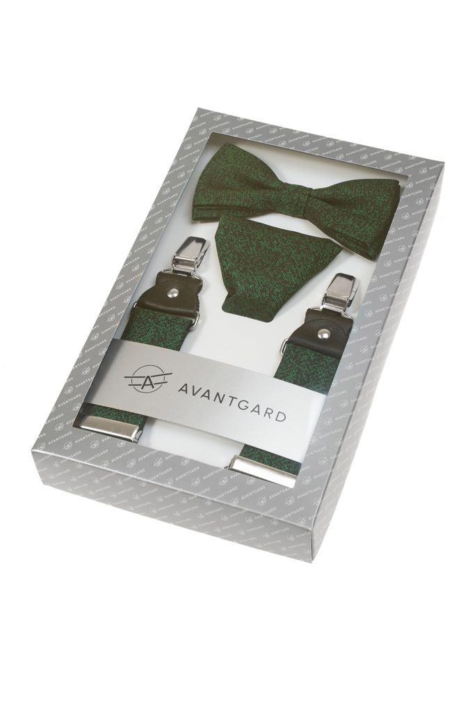 összehangolt szett nadrágtartóval, csokornyakkendővel és díszzsebkendővel
