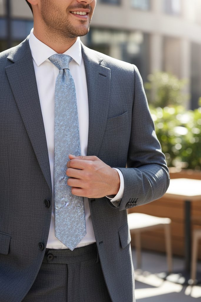 Ezzel az elegáns világoskék nyakkendővel biztosan lenyűgöz. A finom, de érdekes nyakkendő az öltöny jellegzetes kiegészítője, minden alkalomra elegáns leszel.