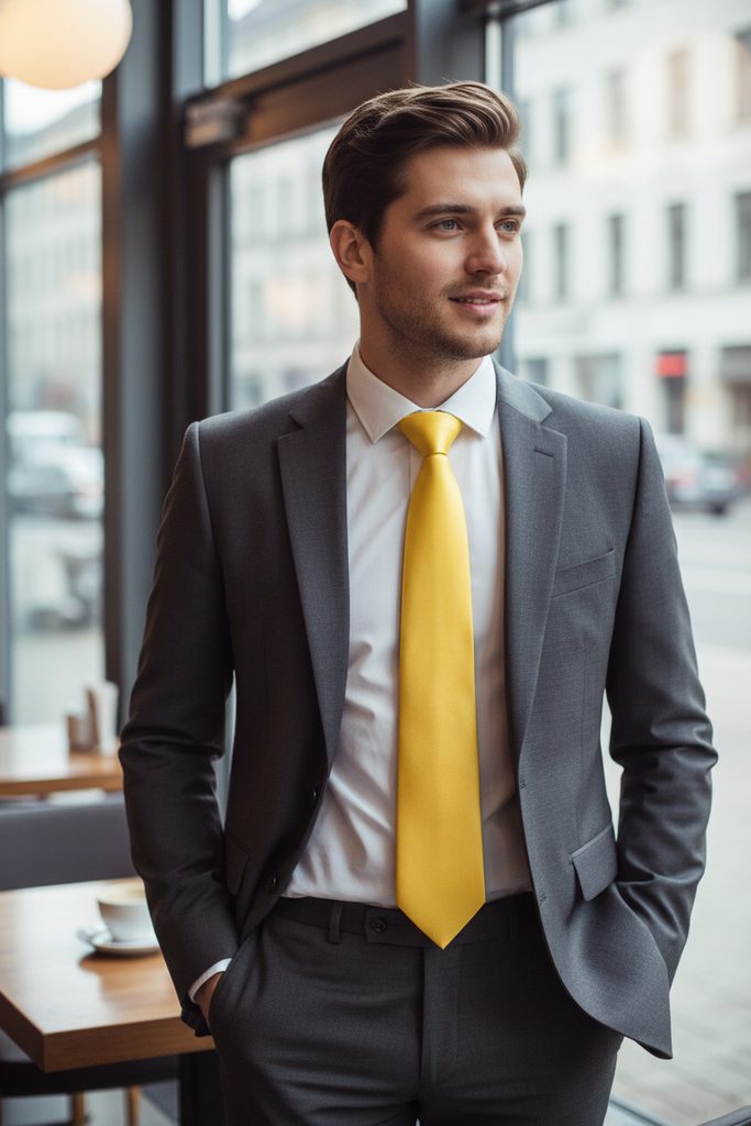 Férfi sárga nyakkendő, fényes szélesség 7 cm vonzó kiegészítője az ingnek.