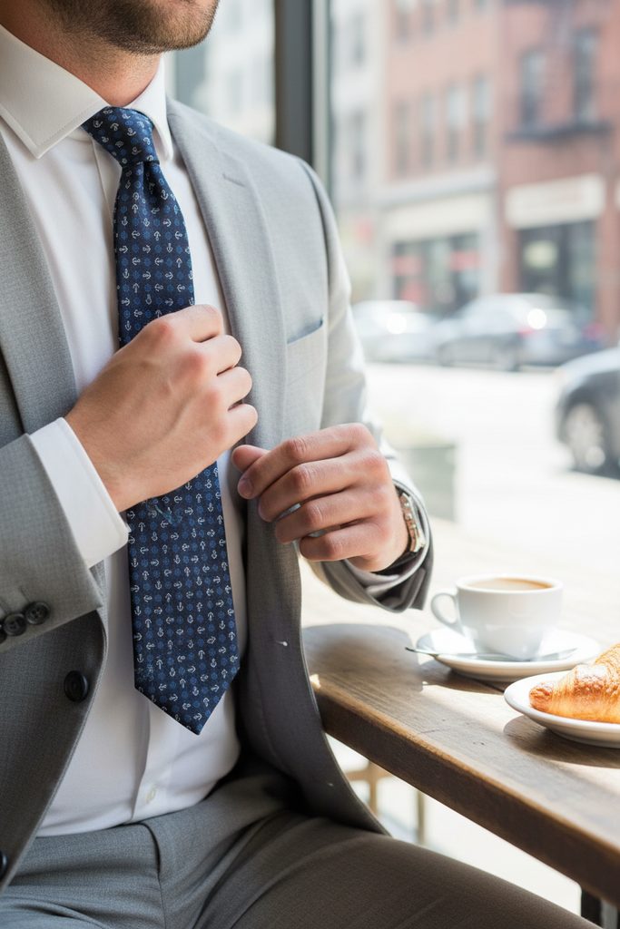 Sötétkék nyakkendő, szép tengerészkék mintával. Sötétkék alapon a kék kormányos fehér horgonyok láthatók. Ennek az Avantgard poliészter nyakkendőnek az előnye a nagy tartósság. A poliészter szálak rendkívül tartósak, ezért a poliészter, sötétkék, horgonyos nyakkendő kiemelkedik a könnyű gondozás terén. A poliészter általában alacsony nedvesíthetőségű, ami azt jelenti, hogy gyorsan szárad, ha nedves lesz. A selyemből készült nyakkendőkkel összehasonlítva a poliészter nyakkendők kevésbé fényesek.