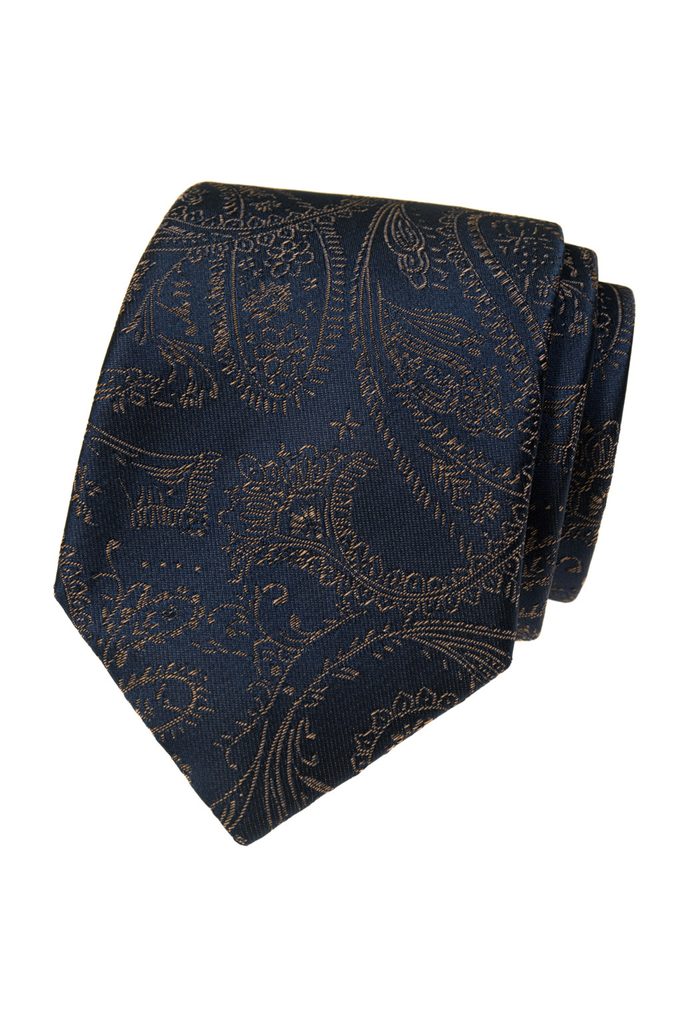 sötétkék nyakkendő barna paisley mintával